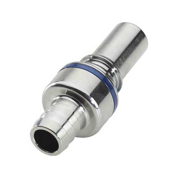 Quick Connection Coupling, Application Dielectric Coolants, Glycol/Water Coolants, Fitting Side A Connection Type Insert, Fitting Side B Connection Type Barbed, Fitting Side B Tube Inner Diameter 1/2 in, Flow Control Type Shut-off, Fitting Material Brass, Overall Length 2 9/16 in, Specific Fitting Shape Straight Insert, Finish/Coating Chrome, Material Grade CA360, Standards REACH, RoHS, Color Cool Blue, Compatible Tube Hardness Not Applicable, Compatible Tube Material Not Applicable