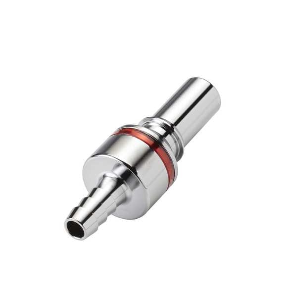 Quick Connection Coupling, Application Dielectric Coolants, Glycol/Water Coolants, Fitting Side A Connection Type Insert, Fitting Side B Connection Type Barbed, Fitting Side B Tube Inner Diameter 1/4 in, Flow Control Type Shut-off, Fitting Material Brass, Overall Length 2 11/32 in, Specific Fitting Shape Straight Insert, Finish/Coating Chrome, Material Grade CA360, Standards REACH, RoHS, Color Warm Red, Compatible Tube Hardness Not Applicable, Compatible Tube Material Not Applicable