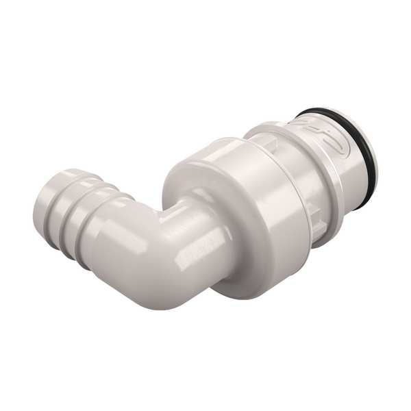 Quick Connection Coupling, Application Irrigation, Fitting Side A Connection Type Insert, Fitting Side B Connection Type Barbed, Fitting Side B Tube Inner Diameter 1/2 in, Flow Control Type Flow-through, Fitting Material Polysulfone, Overall Length 2 3/32 in, Specific Fitting Shape 90 Degrees Elbow Insert, Material Grade Not Applicable, Color White, Compatible Tube Hardness Not Applicable, Compatible Tube Material Not Applicable, Compatible Tube Wall Thickness Not Applicable