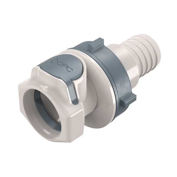 Quick Connection Coupling, Application Irrigation, Fitting Side A Connection Type Coupler, Fitting Side B Connection Type Barbed, Fitting Side B Tube Inner Diameter 3/4 in, Flow Control Type Shut-off, Fitting Material Polysulfone, Overall Length 2 15/16 in, Specific Fitting Shape Straight Coupler, Material Grade Not Applicable, Color White, Compatible Tube Hardness Not Applicable, Compatible Tube Material Not Applicable, Compatible Tube Wall Thickness Not Applicable