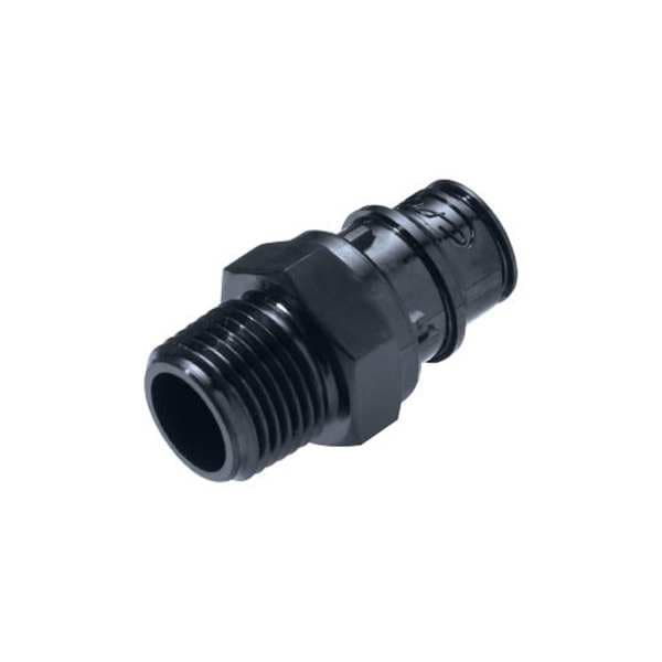 Quick Connection Coupling, Application Irrigation, Fitting Side A Connection Type Insert, Fitting Side B Connection Type NPT, Flow Control Type Shut-off, Fitting Side B Pipe Size 3/4 in, Fitting Material Polysulfone, Overall Length 1 31/32 in, Specific Fitting Shape Straight Insert, Material Grade Not Applicable, Color Black, Compatible Tube Hardness Not Applicable, Compatible Tube Material Not Applicable, Compatible Tube Wall Thickness Not Applicable, For Hole Diameter Not Applicable
