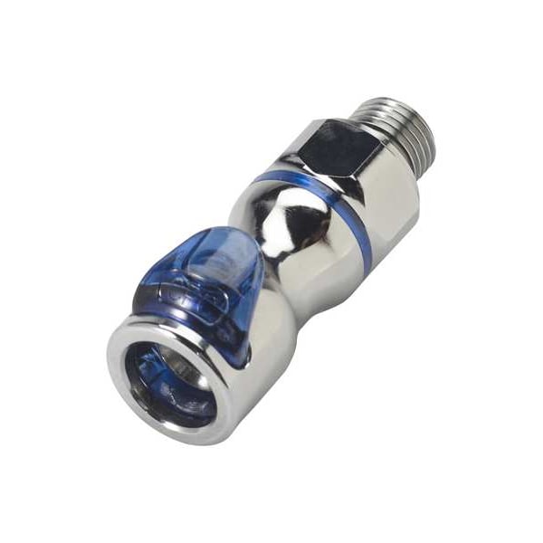 Quick Connection Coupling, Application Dielectric Coolants, Glycol/Water Coolants, Fitting Side A Connection Type Coupler, Fitting Side B Connection Type BSPP, Flow Control Type Shut-off, Fitting Side B Pipe Size 1/4 in, Fitting Material Brass, Overall Length 2 5/16 in, Specific Fitting Shape Straight Coupler, Finish/Coating Chrome, Material Grade CA360, Standards REACH, RoHS, Color Cool Blue, Compatible Tube Hardness Not Applicable, Compatible Tube Material Not Applicable