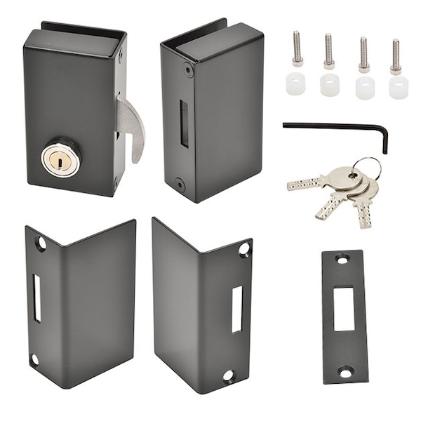 1 x PL-SE sliding door lock mounted for 3/8 glass+ and extra angle for 1/2 glass