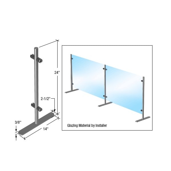 Portable Partition Posts are available in standard heights of 24 610 mm and 36 914 mm, and act as protective barriers. They accept 1/4 6 mm and 3/8 10 mm glass or acrylic. SA50BS pressure fittings hold the glazing in place with no fabrication needed. A sturdy 2-1/2 64 mm x 14 356 mm removable base holds the post upright, which eliminates the need for counter attachment.