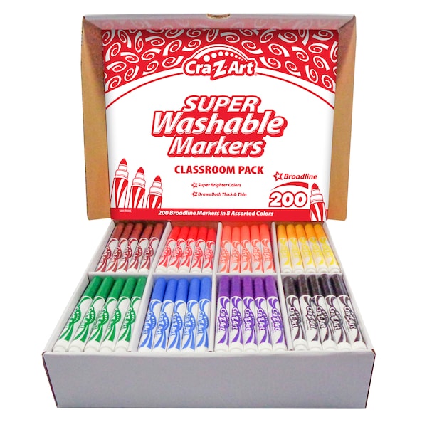 Cra-Z-Art Markers multi-pack will lend creativity to any project. Ideal for children, they are non-toxic and washable! Cra-Z-Art markers have fine tips and come in bright, classic colors. Great for classrooms! Each pack includes 200 markers in 8 colors.