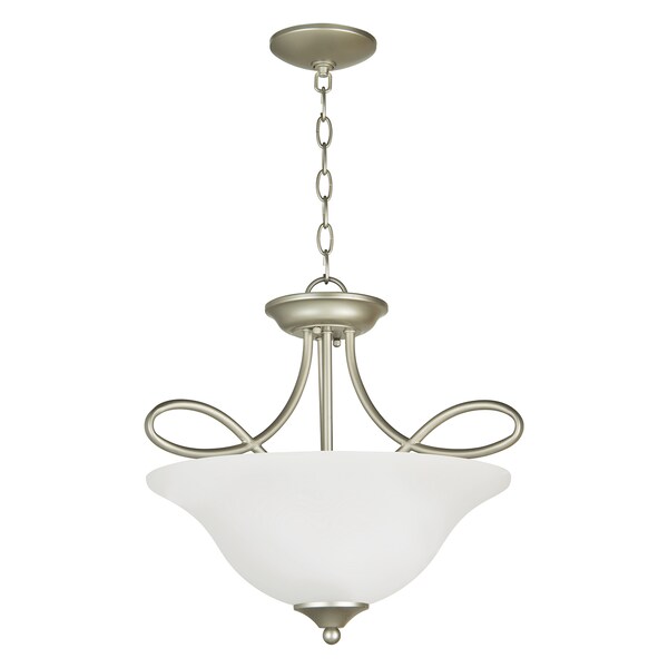 Cordova 3 Light Convertible Semi Flush In Satin Nickel With White Frosted Glass