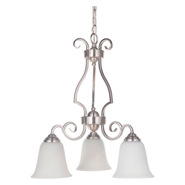 Cecilia 3 Light Down Chandelier In Brushed Satin Nickel With White Frosted Glass