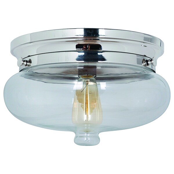 This One Light Flush Mount is part of the Yorktown Collection and has a Polished Nickel Finish and Antique Clear Glass.