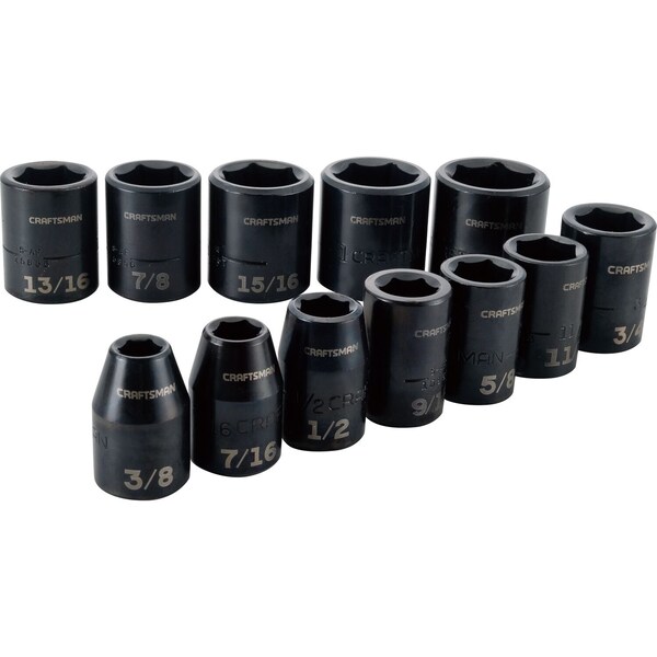 1/2" Drive Sockets, 12-pc 1/2" SAE Impact Socket Se Black Oxide