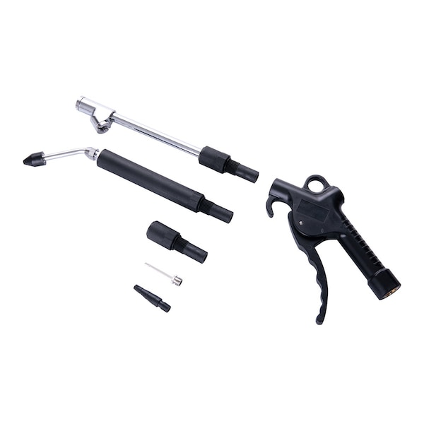 The CRAFTSMAN Blow Gun Kit offers a versatile solution for inflating and cleaning tasks in the garage, workshop, or home. Featuring a variety of attachments, this kit is designed to handle a range of applications, including removing dust and debris, inflating tires, sports balls, and pool toys. The blow gun's extended nozzle reaches hard-to-access areas, ensuring thorough cleaning and precise inflation. With a 1/4-in female NPT connection, it easily attaches to quick-connect plugs or air hoses (not included), making it compatible with most air compressors. Durable and reliable, this blow gun kit is perfect for both professional and DIY use, providing powerful air output to get the job done quickly.