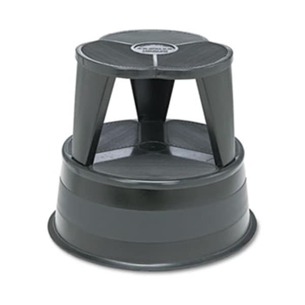 Spring-mounted casters retract when stool is stepped on. Steel construction with nonslip vinyl treads and protective bumper around base. Ships in two pieces and requires no tools for assembly. Number of Steps: 2; Step Stools Type: Rolling Step Stool; Frame Material: Steel; Step Material: Steel.