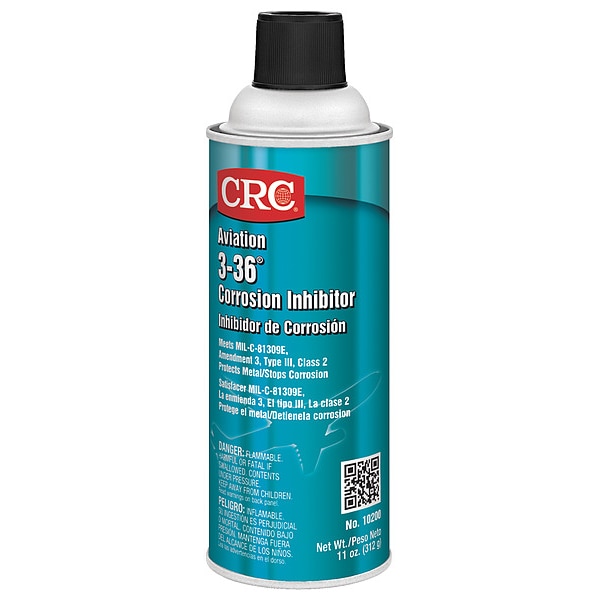Corrosion Inhibitor, NSF Rating Not Rated, Wet Lubricant Film, Medium Indoor Life Expectancy, Medium Outdoor Life Expectancy, Moderate Removability, Min. Operating Temp. -40 Degrees F, Max. Operating Temp. 300 Degrees F, Lubricant Container Aerosol Can, Container Size 11 oz, Aviation 3-36, Lubricant Color Amber, Net Weight 11 oz, Chemical Base Petroleum, Specific Gravity 0.8, VOC Content 73 Percent, Flash Point 144 Degrees F, Standards Mil-C-81309E