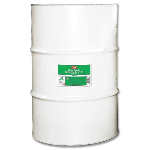 Food Grade Synthetic Gear Oil, Polyalphaolefins , Size 55 gal, SAE Grade 50 , Viscosity Index 128 , ISO Viscosity Grade 220 , Flash Point (F) 504DF , Pour Point (F) -31DF, For Use In All Types Of Food Processing Facilities. Gear Sets, Bearings, Worm Gears, Chains, & Circulating Oil , Package Quantity 1