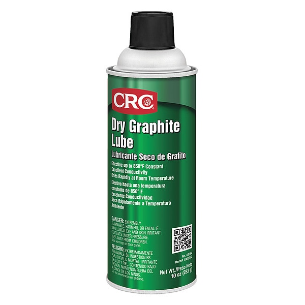 General Purpose Lubricant, Dry, CRC, Net Fill 10 oz, Container Size 16 oz, Lubricant Container Aerosol Can, Graphite, No Additives Primary Additive, Max. Operating Temp. 850 Degrees F, NSF Rating Not Rated, 50 State VOC Compliant Yes, VOC Content 98.8 Percent, Lubricant Color Black, Odorless No, Flammable Flammability, Extremely Flammable Aerosol (Category 1), Flash Point -20.2 Degrees F, Standards RoHS Compliant, Not USDA Certified Biobased Product USDA Certified Biobased Product