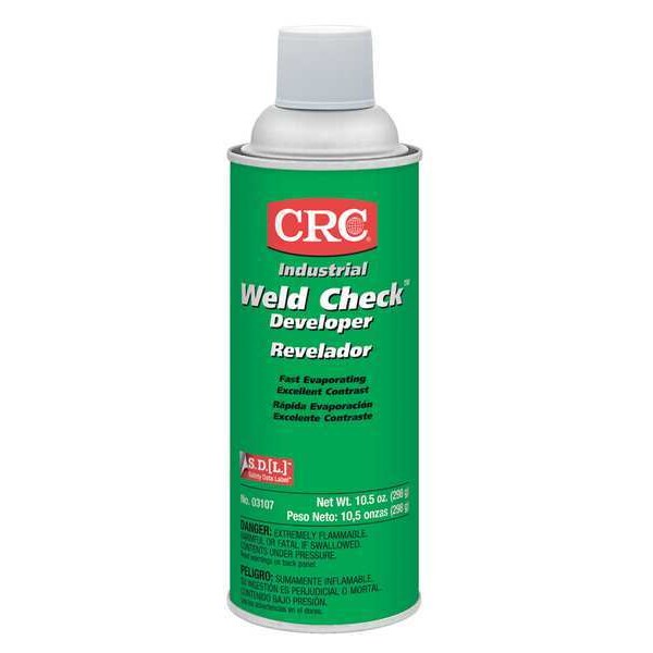 Developer For Weld Testing, Container Capacity 10.5 oz, Container Type Aerosol Can, Product Type Developer for Weld Testing, Standards 29 CFR 1910.1200, EPA TSCA Inventory List, Color White, Features Extremely Flammable, Flash Point 23 Degrees F, Leaves a Residue, For Use On Metal Surfaces, Form Powdery Film, Process Detect Leaks, Fatigue Cracks, Stress, Maximum Temperature 122 Degrees F, Minimum Temperature 23 Degrees F