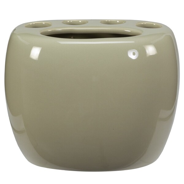 Add a sleek sophisticated look to your bathroom with the Shades toothbrush holder. Use to hold manual toothbrushes or your grooming tools like razors, tweezer, make-up brushes and more. Made of high qualityceramic. Wipe clean. 5.25 x 3.75 x 3.75"H