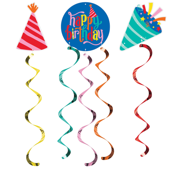 Hats Off Happy Birthday Dizzy Danglers, 18PK