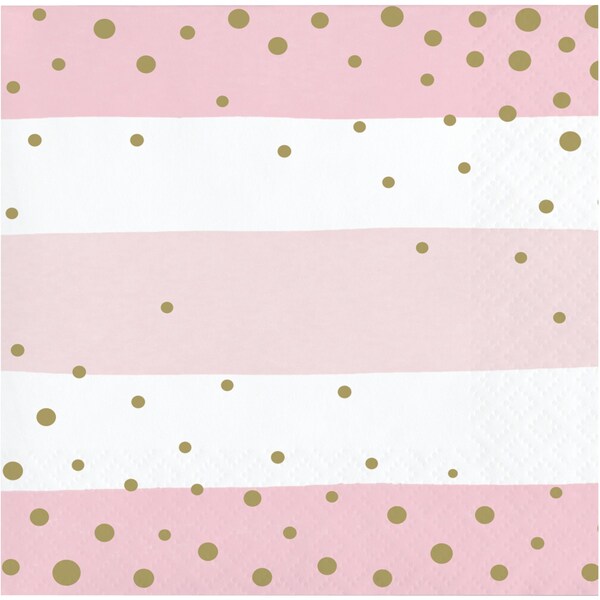 Pink and Gold Celebration Beverage Napkins, 5"x5", 192PK