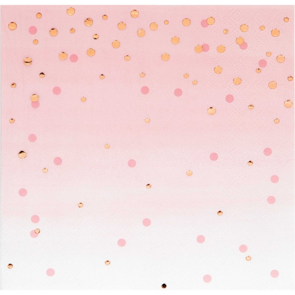 The Rosé All Day Polka Dot Napkins add a lovely touch to any shower. These 3-ply paper napkins measure 6.5” and feature a pink theme with rose gold foil polka dots. Sold in quantities of 192, these disposable paper napkins coordinate with all Rosé All Day party supplies.