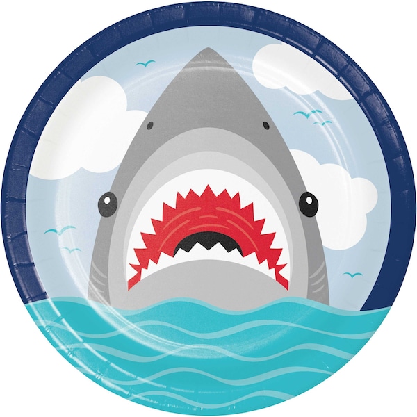 Invite your guests to swim on over for a bite, with help from our Shark Party Paper Plates. These sturdy, 9-inch paper plates are perfect for serving all of your favorite party foods, including "shark bait" snack mix! The plates feature a toothy shark coming out of the water, ready to take a bite. A seagull-filled sky completes the look. Each order of Shark Party Paper Plates contains 96 total plates.