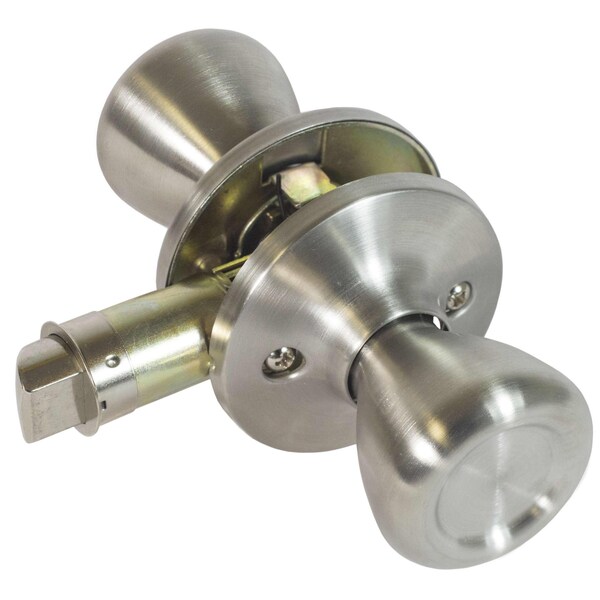 Creative Products Group's LSK-C2-SS Knob Set is designed for RV bathroom and bedroom doors. It features a non-locking design. The durable stainless steel construction provides a beautiful addition to any RV interior! Backset: 2-3/8. Latch: 7/8 drive-in. Fits doors 1-1/8 to 1-1/2 thick.