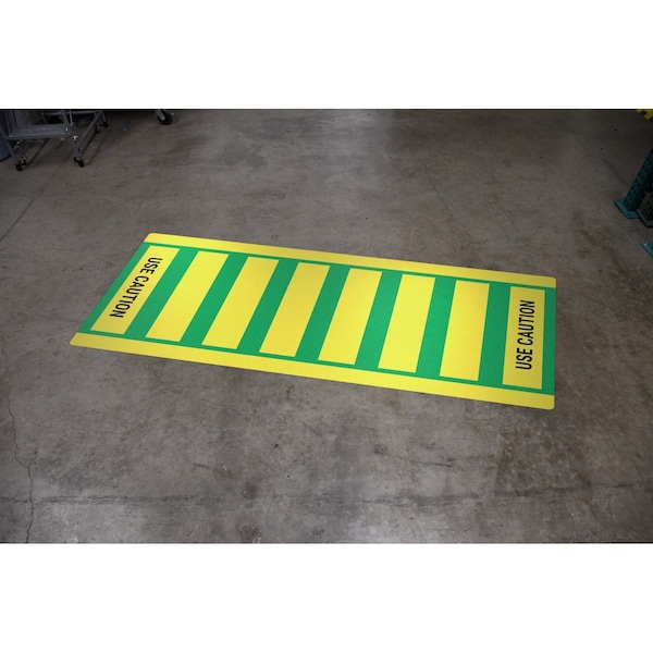 Improve pedestrian safety in the workplace with the Use Caution Yellow/Green - Crosswalk Floor Sign. Crosswalk Floor Signs are constructed with tough, industrial-grade materials, allowing it to survive in the most extreme work environment, and features a high contrast and bold design that can be easily seen from a distance. Our crosswalks are not only engineers to withstand constant foot and forklift traffic, but chemical, water, and UV damage as well. No matter the climate or surroundings, we've made sure our floor signs are designed to provide years of service.
