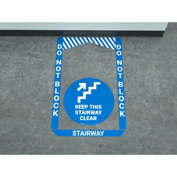 Stairway - Pre Made Floor Sign Bundle Whether you have a stairway that’s only used during emergencies or is always in use, our Pre-Made Floor Sign Bundle is designed to remind workers to keep a specific stairway clear of debris so it can be easily access at all times. This bundle comes with one of our durable Stairway floor signs along with 3 border floor signs made from the same durable vinyl material. The 3 border signs read Do Not Block to alert workers that this area needs to remain clear so the stairway can be accessible at any moment.