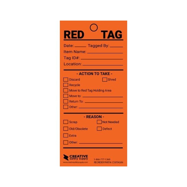 5S tags help to create organization and standardization throughout the workplace. These tags can be used to identify items that need to be moved, organized, recycled, scrapped, or shredded. These tags are available in a variety of different colors such as white, yellow, red, orange, light blue, and green. The variety of colors allows you to use different colored tags to indicate different intentions. Industrial 5S tags serve as a visual management tool to help employees quickly and efficiently identify specific items. These tags can be very helpful especially in large business areas with many employees, particularly if employees work different shifts. These tags allow for easier sorting and enhance both the effectiveness and efficiency of work processes.