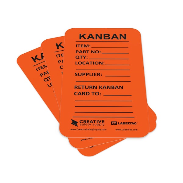 Kanban is a very useful tool for managing inventory, manufacturing schedules, finished products, and parts. The Kanban system creates perfect communication within departments, suppliers, and individual employees by using the cards as a visual cue to perform a certain action, such as adding an item to a weekly shopping list when inventory is low. Often used hand-in-hand with Lean Manufacturing practices, the Kanban system not only helps communicate actions across departments, but also identifies and eliminates waste from work processes. Our 10 pack of Kanban cards are directly printed on durable styrene material that can be written on with pen or marker. Each card is 4x7 and are available in 6 colors to choose from.