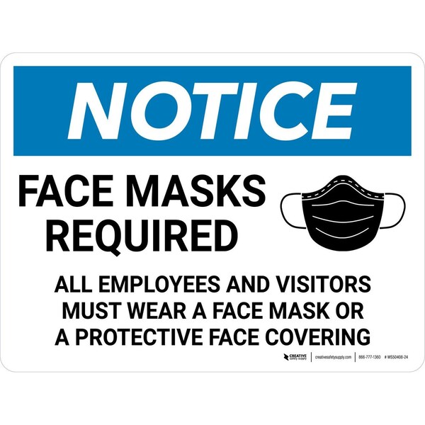 Notice: Face Masks Required - All Employees and Visitors Must Wear Face Mask - Wall Sign is constructed using durable, industrial-grade materials, and is designed to be easily noticeable from a distance. Our wall signs such as this one, can be mounted anywhere necessary, such as doors, sign posts, windows and more! Mounted To PVC Signboard.