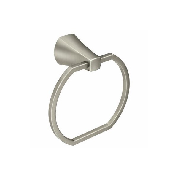 Lindor Spot Resist Brushed Nickel Towel Ring Elegantly simple, the Lindor collection's graceful curves and contours flow as beautifully as the faucet's water stream, creating a Transitional style that spans a variety of decorating trends
