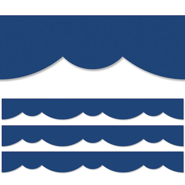 A fun, fresh twist on a solid blue border! This Blue Stylish Scallops Border features a playful double scallop design to create a neat and easy way to edge any bulletin board or classroom display. Great for any type of school setting at any grade level. Also great for use on bulletin boards in an office, a church, a college dorm, or a senior living residence. With its versatile scallop design, this bulletin board border can be used alone to create a basic look or layered with another border for a more designer look. The vibrant blue color is perfect for use on seasonal and holiday displays for Christmas, Hanukkah, and 4th of July. These EZ borders come in smaller strips, which are easier to manage and store. Each pack comes with enough borders to complete 2 full bulletin boards. Strips measure 2-3/4" x 24". Each pack includes 24 strips (48 feet). Sold as 3 packs for a total of 72 strips (144 feet).