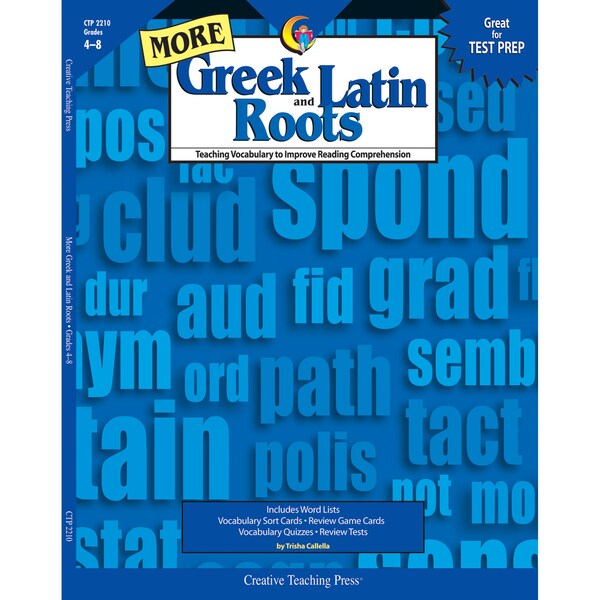 More Greek and Latin Roots follows the same friendly, easy-to-use format as in Trisha Callella's original Greek and Latin Roots and features 30 new lessons to support students' growing vocabulary. The built-in repetition and review will help students overlearn these roots and their meanings so that they become second nature. National standards require that students beginning in 4th grade use their knowledge of common Greek and Latin roots to analyze the meaning of complex words. This book introduces students to 30 new root words. Gr. 4-8. 144 pages.