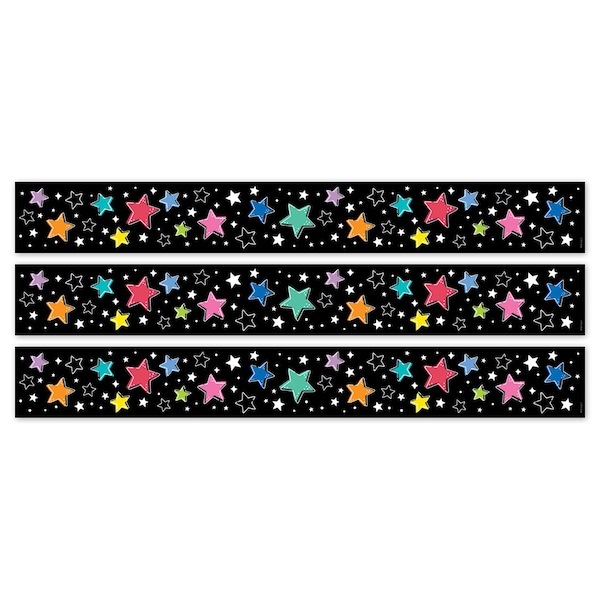 Star Bright Colorful Stars on Black EZ Border, 48 Feet Per Pack, 3PK