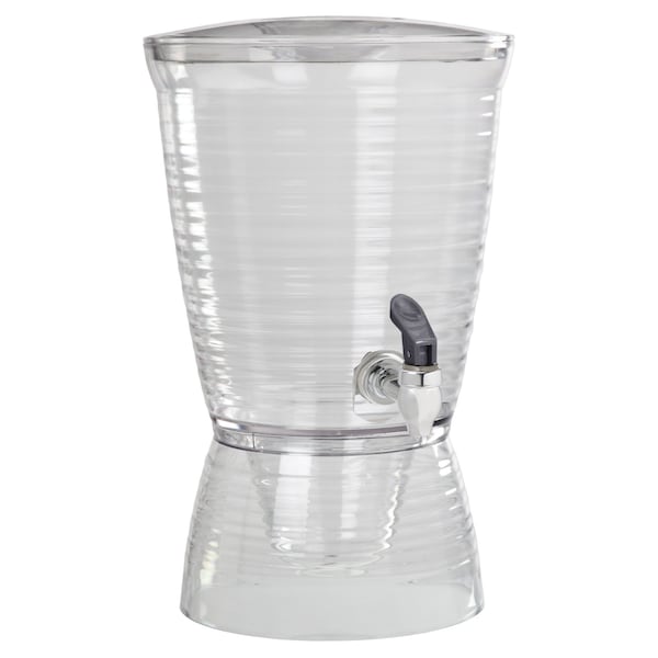 Serve your guests in style with the It is practical for serving at gatherings because of its sturdy base, which makes the container easy to fill This clear beverage dispenser also has a dripless spigot which allows carefree pouring without the threat of spillage or leaks This beverage dispenser is asthically pleasing as it is functional as a large clear container for colorful tea, fruit flavored water, your favorite adult beverage or any cold beverage This is BPA free and made of durable acrylic that safe to use You can also fill the base with ice for additional cooling