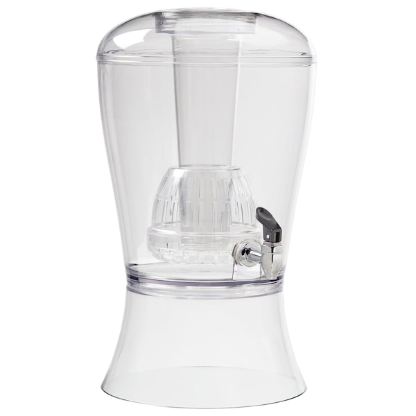 Serve your guests in style with the 3 gallon beverage dispenser It is practical for serving at gatherings because of its sturdy base, which makes the container easy to fill This clear beverage dispenser also has a dripless spigot which allows carefree pouring without the threat of spillage or leaks This beverage dispenser is asthically pleasing as it is functional as a large clear container for colorful tea, fruit flavored water, your favorite adult beverage or any cold beverage This is BPA free and made of durable acrylic that safe to use An ice column connects to the lid so you can easily keep your beverage cold and enjoyable An infuser is included so you can add fruit or herbs for extra flavor