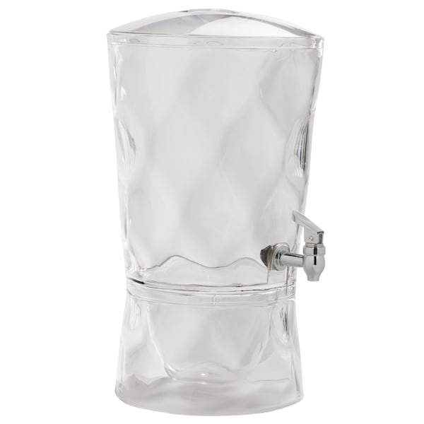 Serve your guests in style with the 3 gallon beverage dispenser It is practical for serving at gatherings because of its sturdy base, which makes the container easy to fill This clear beverage dispenser also has a dripless spigot which allows carefree pouring without the threat of spillage or leaks This beverage dispenser is asthically pleasing as it is functional as a large clear container for colorful tea, fruit flavored water, your favorite adult beverage or any cold beverage This is BPA free and made of durable acrylic that safe to use You can also fill the base with ice for additional cooling