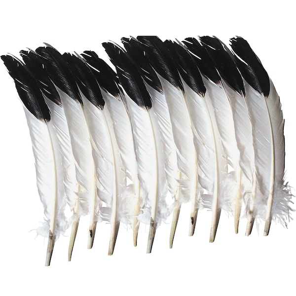 Imitation turkey feathers feature a realistic design that looks as good as the real thing. Feathers are approximately 11" to 12" in length. Add a fun element to your creations with these durable feathers. They are perfect for decorations, arts and crafts projects, masks and more.