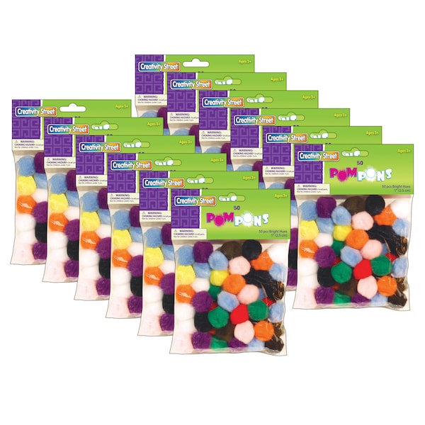 Pom Pons, Bright Hues, 1in, 50 Count, PK12