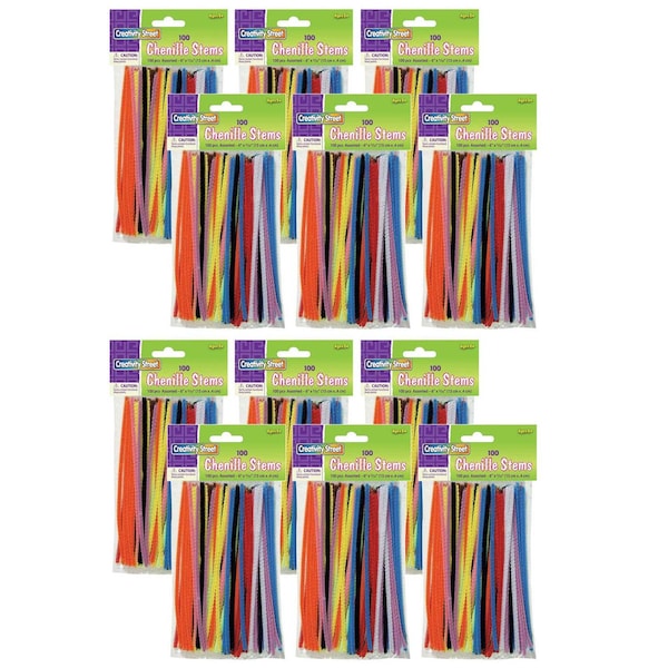 Pack of 100 regular size stems in assorted colors. Each piece is 6" x 4mm and packaged in a poly bag with header. Sold as 12 packs for a total of 1200 stems.