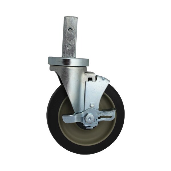 Caster W/Brake;Square Post, Polyurethane Wheel= 5" X 1-1/4";Crescor