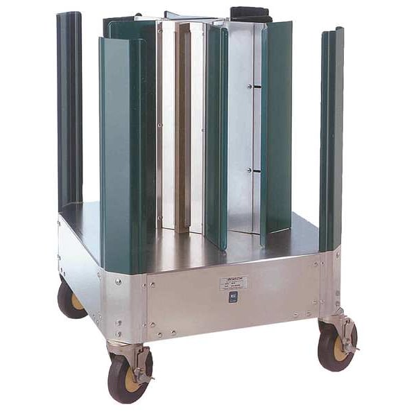 Dish Dolly, Maximum Load Capacity 250 lb, Compatible Plate Diameter 10 3/4 in, Handle Included No, Overall Length 23 in, Overall Width 23 in, Color Silver, Drain Holes Included No, Includes (2) Adjustable Adapter, Material Aluminum, Number of Casters 4, Overall Height 32 in, Product Type Dish Dolly, Caster Type (2) Swivel, (2) w/Brake, Number of Compartments 4, NSF Certified Yes