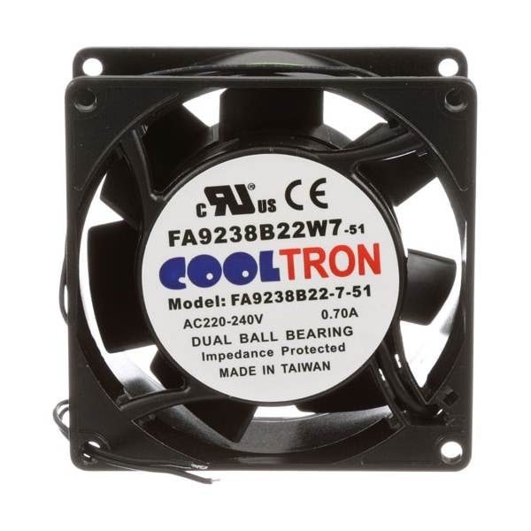 Vent Fan;3-11/16" Square, 3-1/4" Mounting Centers ;1-1/2" Thick, 220-240Vac, .7A, Wire Leads.;Dual Ball Beaarings;Crescor Most Models