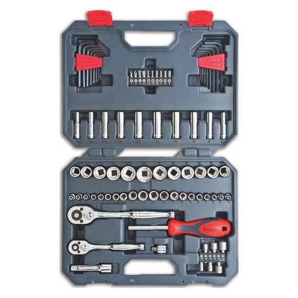 Tool Set,84 pc.,1/4in and 3/8in Drive, Measurement Type SAE, Drive Size Sockets Not Included, Pliers Included None, Sockets, Drive Tools, and Accessories Included None, Wrenches Included None, Cutting Tools Included None, Plumbing Tools Included None, Electrical and Telecom Tools Included None, Measuring and Testing Tools Included None, Miscellaneous Tools Included None, Number of Pliers 0, Number of Wrenches 0, Abrasives and Finishing Tools Included None