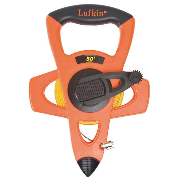 If you are looking for a long tape measure, the Crescent Lufkin 50 ft Engineer's Tape Measure is an excellent choice. The rubber grip offers comfort and control when working with tools. With a 1 rewind feature, this tape measure has better blade retraction than most standard tape measures. It also features high visibility orange ABS case and yellow fiberglass blade material for durability. This 50 ft long tape measure has 1/10 and 1/100 ft graduations on its black/high visibility orange case. The overall length of the tool is 11 5/8 in., while the width is 2 in.. Designed to help you get your job done quickly and efficiently, the Crescent Lufkin Engineer's Tape Measure will be your new go-to tool.