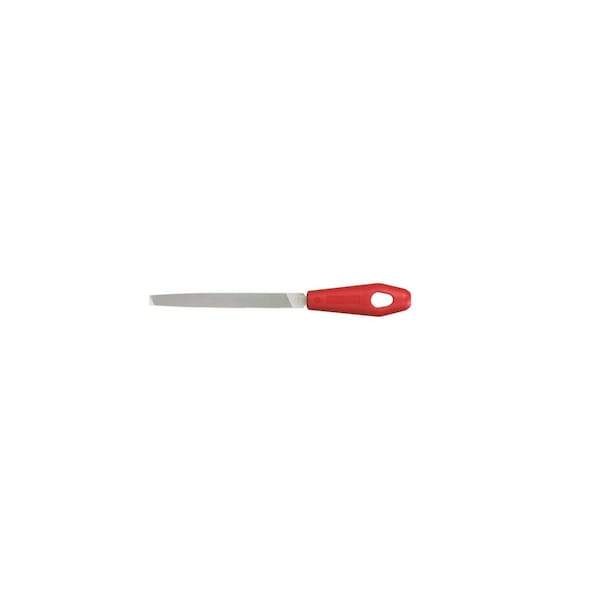 FILE MILL BASTARD 6INCH W/HDL Rectangular shape, single cut on sides and edges, two square edges, red handle, all sizes taper slightly in width. Used for sharpening mill or circular saws or draw-filing and finishing metals.