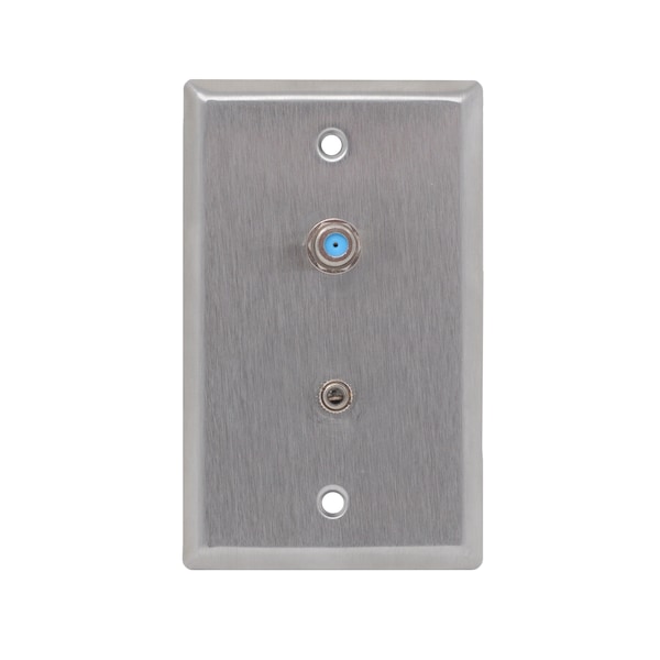 Phone Jack 1/8 In. Wall Receptacle,CATV, For Use With Samsung Healthcare TVs, Color Silver, Overall Depth 3 in, Includes 1-Gang Plate with 1/8 in/3-Conductor Phone Jack and Female Connector, Overall Height 1 in, Overall Width 5 in, Product Type Wall Receptacle, Finish Unfinished, Material Stainless Steel