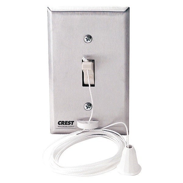 Pull Cord Station, Voltage 12 to 120V, Amps 15A @ 12 to 120V, Color Silver, Includes 7 ft Nylon Pullcord with Pendant, Standards FDA Listed
