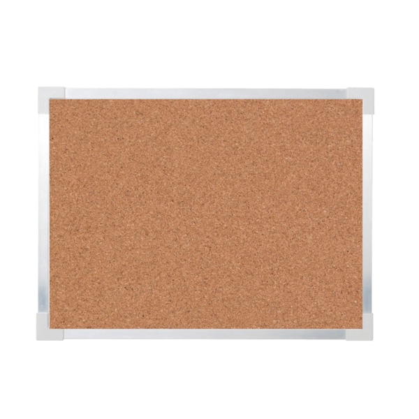 These cork boards are constructed of a fine grain natural cork skin laminated to a durable insulation board. Surface resists wear and tear of repeated tacking. Aluminum framed. Measures 36" x 48".