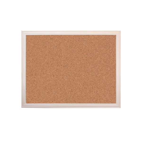 These cork boards are constructed of a fine grain natural cork skin laminated to a durable insulation board. Surface resists wear and tear of repeated tacking. Hardwood framed. Measures 36" x 48".